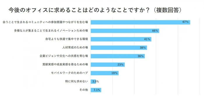 今後のオフィスに求めるのは「会うことで生まれるコミュニティへの参加意識やつながりを生む場」