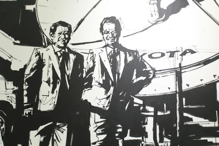 こちらには、トヨタコネクティッド様のこれまでの”リーダーズ”が描かれています。今回のプロジェクトのメインコンセプトでもある「企業理念の浸透」を図るために、歴史と創業者の思いを「知り」「語れる」空間になっています。