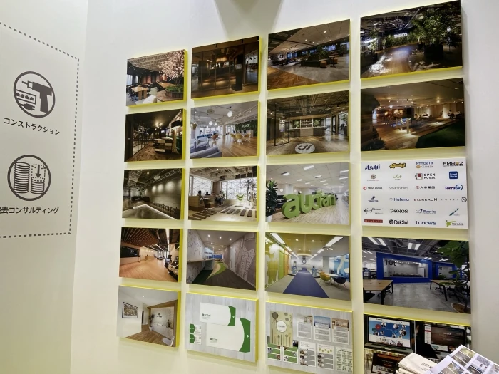右側の壁面にはヴィスのオフィスデザイン実績をまとめました。