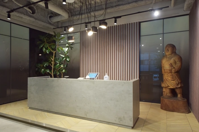 会長が鹿児島県のご出身ということもあり、以前のオフィスから設置している物だそうです。担当PM(プロジェクトマネージャー)によると、「西郷さんが浮かないエントランス」というオーダーがあったとのこと。