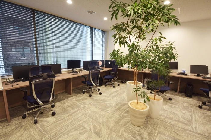 また、中央のグリーンが、さりげなく背後からの視線を隠しています。グリーンには、リフレッシュ効果、空間を華やかにする以外に間仕切りの代わりにもなる優れものです!