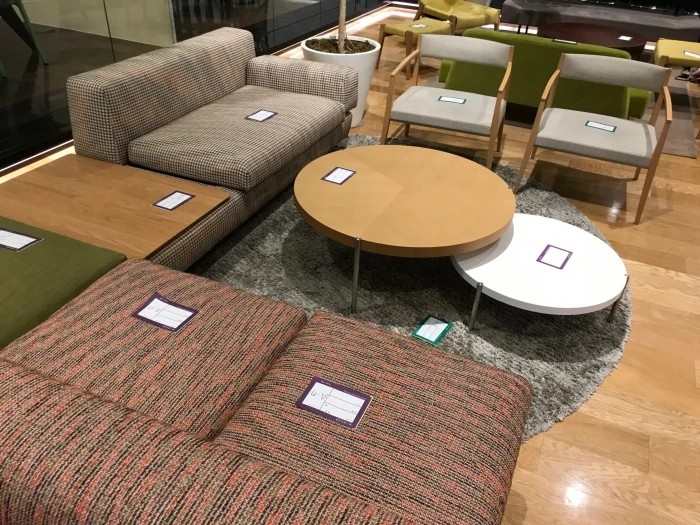 まず、レイアウト変更をするときは、変更後の図面を元に写真のように家具にナンバリングシールを貼り、その順番に沿って荷物移動をします!