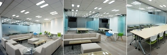 清田:入口に入ってすぐのところです。ソファーがあって、隣にガラスの壁の会議室があり、全部開けるとひとつの空間になる場所です。