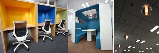 今回のコンセプトは『カイオムの未来を創る』でした。それにはコミュニケーションや考えるスペースがさまざまな環境で提供されていることが大事でした。形、色合い、場所をどのように設定すれば、コミュニケーションが図れ、発想が豊かになり、未来を創っていけるのかを考えながら決めていきました。