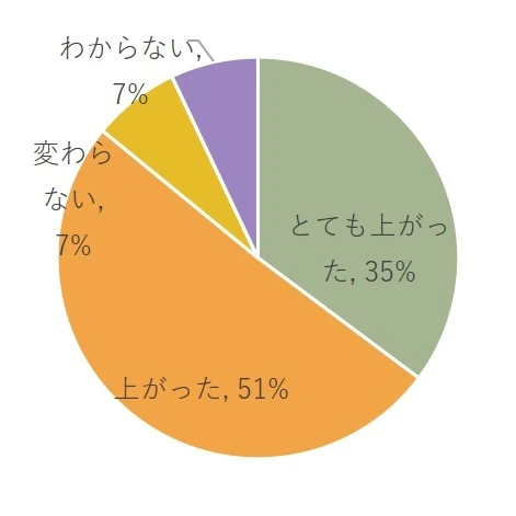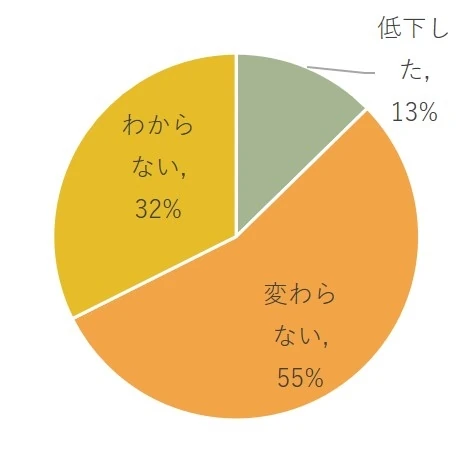 一方で「低下した」という回答も13%あり、すぐに効果が出ている会社もあるようです。