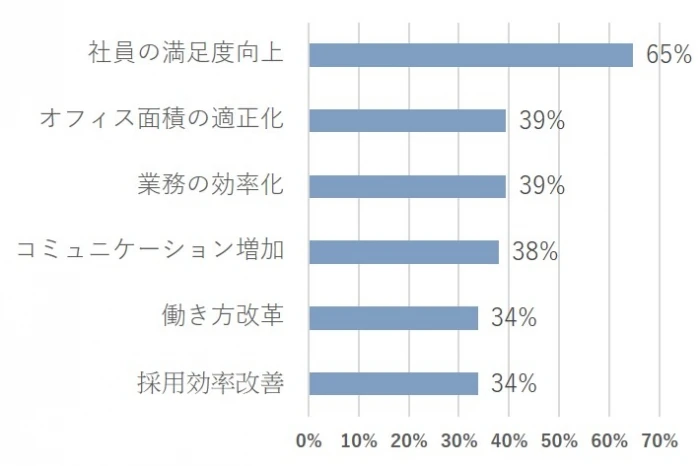 「社員の満足度向上」を一番の目的とする会社が多く、社員のことを考えたオフィスになっているのは以前と変わらない傾向です。