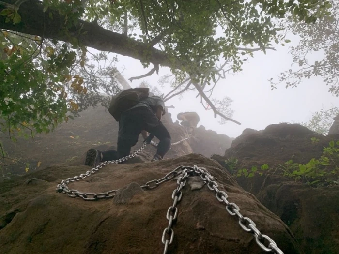 妙義山の洗礼、鎖をつかんで進む難関ポイントへ