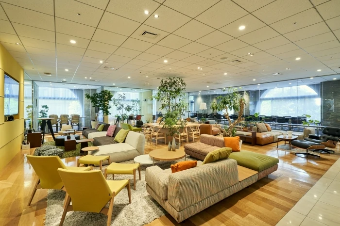 ・「リラックスして休憩するだけではなく、部署間やチーム内でのコラボレーションを促すスペース」