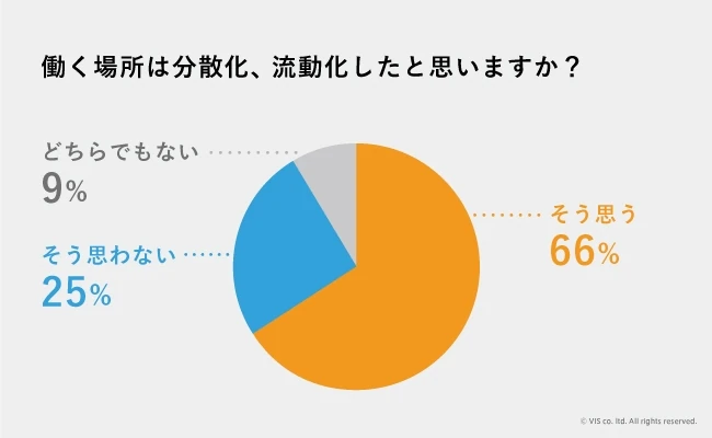 「働く場所は分散化、流動化した」と思う割合は66%にのぼりました。