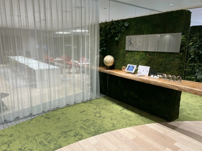 大阪オフィスに立ち寄るのは実に3年ぶりぐらい。その頃はまだ増床前だったので、オフィスが倍の広さになりバイオフィリックデザイン(グリーンを多く取り入れたデザイン)を大きく採用したオフィスを目にするのは初めてでした。