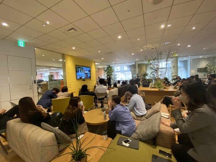 これまでのPhilosophy・Concept・Vision・Mission・Valueに代わる、Purpose・Ambition・Valuesが発表され、全メンバーで唱和をしました。
