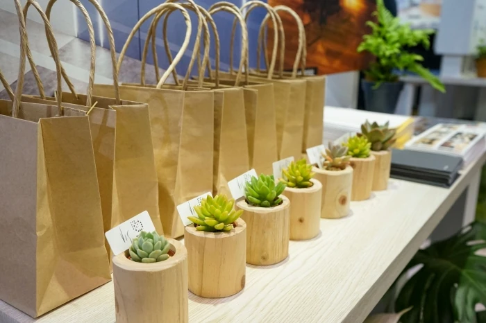 昨年の展示会で好評いただいたグリーンのノベルティを、今回の展示会でもアンケートにお答えいただいた皆さまにお渡ししました!オフィスやご自宅のインテリアとして飾っていただけます。