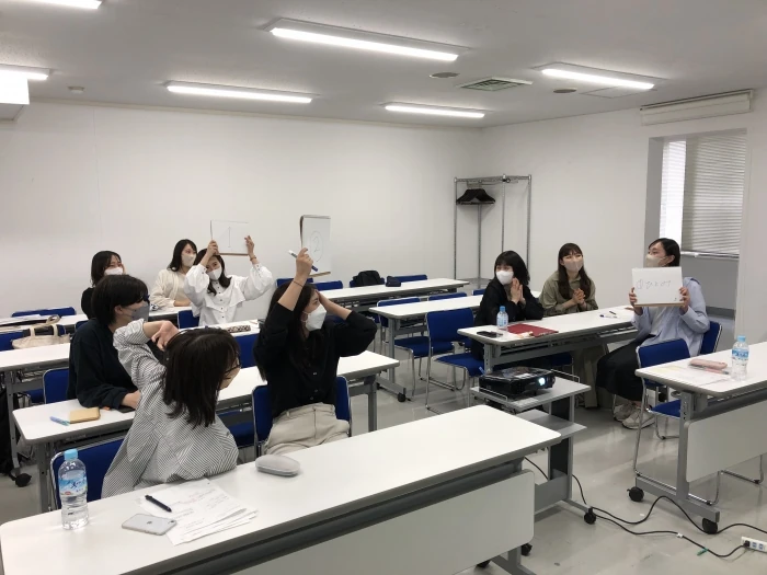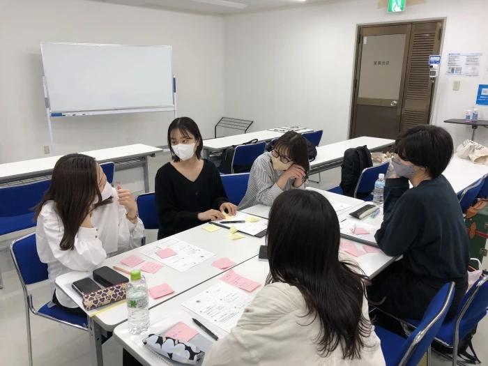午後は、私たち新卒2年目のメンバーが担当。少し気分を変えてグループワークに取り組んでもらいました。