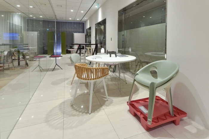 東京オフィスのエントランスでは、家具メーカー様ご協力のもと、家具を月替わりで展示しています。2022年9月から10月は、MAGIS / マジス様(以下マジス様)にご協力いただいております。