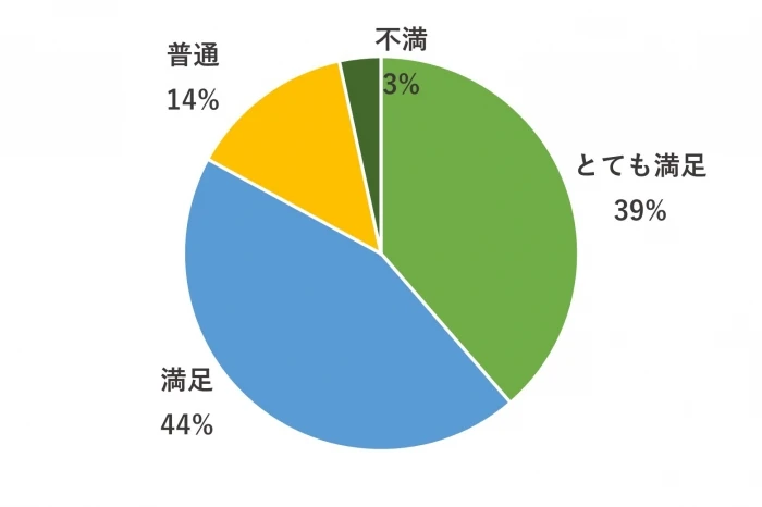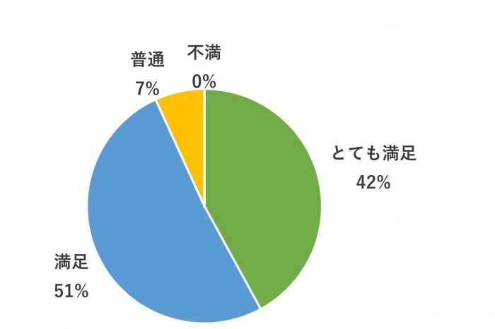 オフィスデザインや仕上がりの満足度について、「とても満足」「満足」が合計93%になりました。