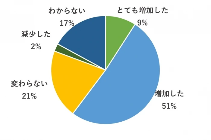 コミュニケーション量の増加については、「とても増加した」「増加した」の回答が60%でした。