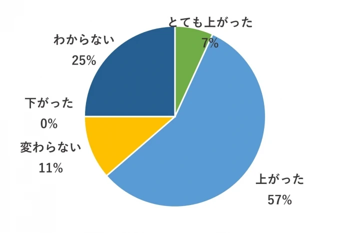 生産性向上は「とても上がった」「上がった」の回答が64%となりました。