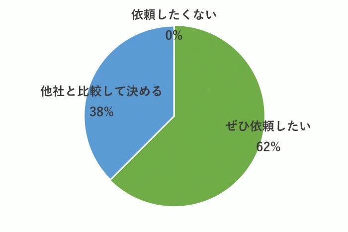 62%の方に次回も「ぜひ依頼したい」と回答いただきました。