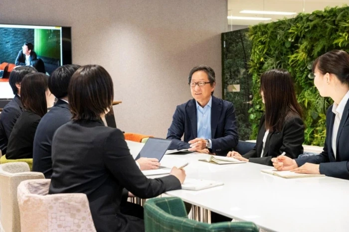 新卒入社1年目は週4回、2年目は週1回、キャリア入社3ヶ月間は週4回、会長、社長をはじめとした役員と朝30分のミーティングを実施。ヴィスの価値観を共有します。