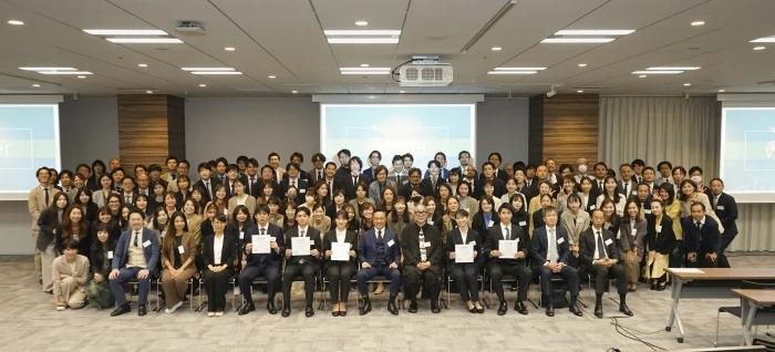 「ただいまより2023年度内定式及び半期総会を始めます」