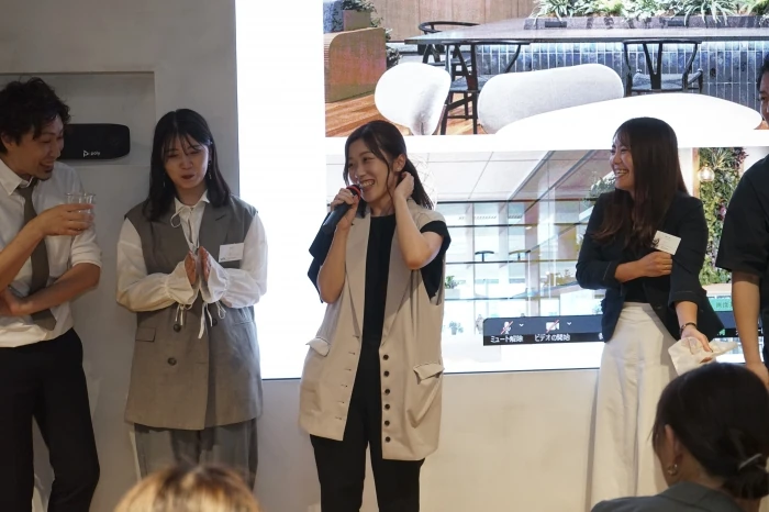 今回の内定式・半期総会は前半、後半に別れており、前半では内定式と半期の報告。後半はオフィスに戻り食事をしながらコンテンツ等を楽しむ懇親会という流れでした。