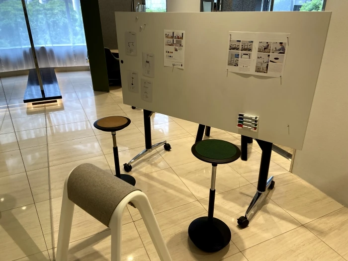 ずっと座ったままの会議よりも、腰かけたり横向きに座ったり、自由に座ったり立ったりすることで脳が活性化し、柔軟なアイデアが生まれます。「あん馬」を模してデザインされたというこのスツールで、よりリラックスしてコミュニケーションが取れそうです。