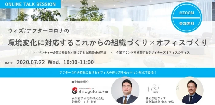【7/22オンラインセミナー】ウィズ/アフターコロナの環境変化に対応するこれからの組織づくり×オフィスづくり