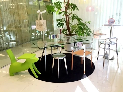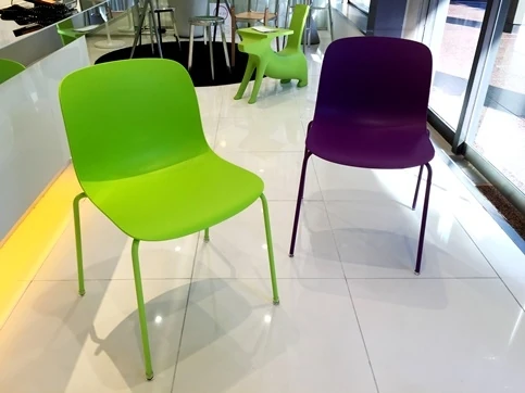 デジャヴ チェアと同様シンプルなデザインで、あらゆる空間に調和。強度もありパブリックシーンでスタイリッシュに大活躍。