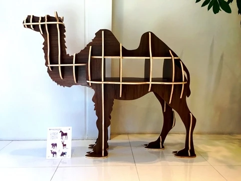 木のパーツを組み合わせて作り出される柔らかな曲線が美しい、ウォールナットのアニマルシェルフが仲間入り。