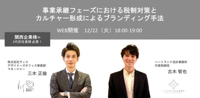 【12/22オンラインセミナー】事業承継フェーズにおける税制対策と、カルチャー形成によるブランディング手法