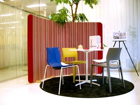 自由自在の間仕切り。吸音効果を活かして輪にすることで1人用の空間作ったり、フレキシブルに曲げて、視線や会話を遮るパーテションに。オフィスのアクセントになり、柔軟な沈黙を実現します。※吸音効果あり
