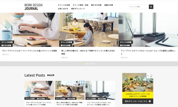 今回運営開始する『WORK DESIGN JOURNAL(ワークデザインジャーナル)』では、この流れを踏まえて、オフィスの移転や改装のポイントなど従来から発信してきた内容に加え、働き方のトレンドや働く人にフォーカスした情報など、「はたらく」に関連する情報をまとめて発信していきます。