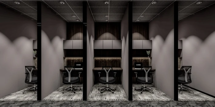 約210坪(700平方メートル)のスペース内に、1名用の半個室を30室、1〜8名用の完全個室を27室用意しました。人数や企業の成長フェーズに合わせて場所を選ぶことができます。