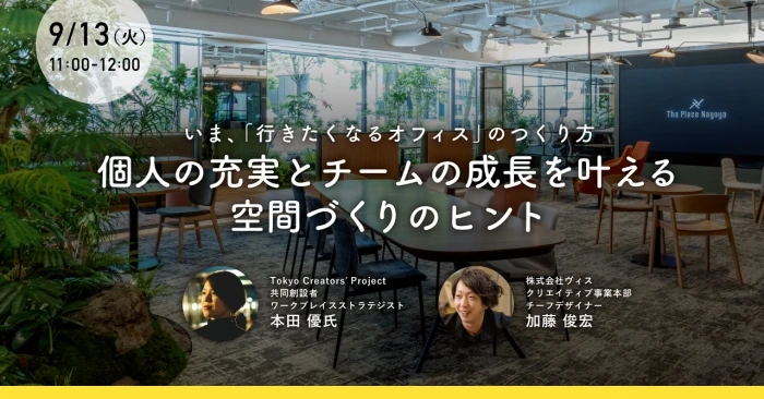 【9/13オンラインセミナー】いま、「行きたくなるオフィス」のつくり方 ー個人の充実とチームの成長を叶える空間づくりのヒントー