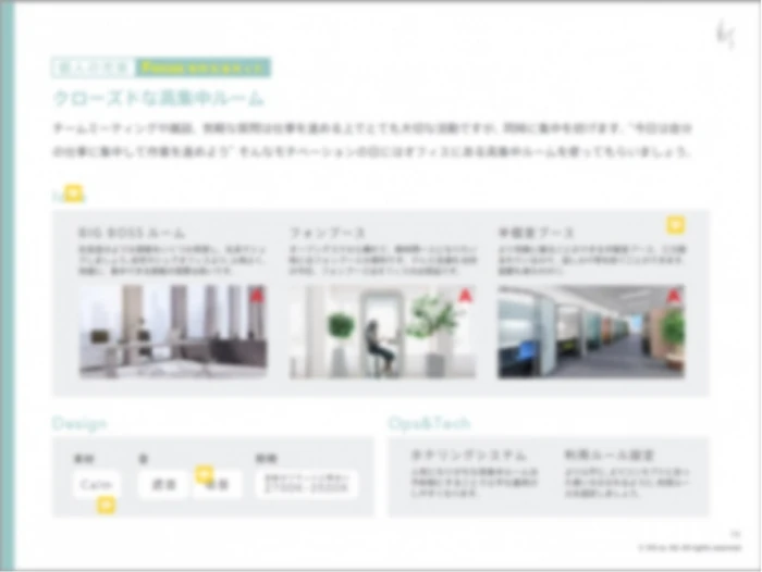 例えば「Focus」を叶えるには、個人で使えるクローズドな集中ブースのほか、チームでコラボレーションのできるオープンな集中エリアを設けるというアイディアも使えます。