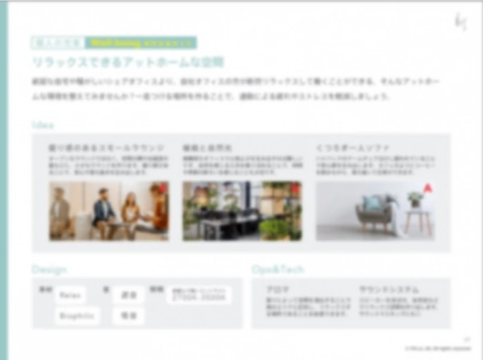 人やタイミングにより異なるニーズに応えられるよう、さまざまな選択肢をオフィスに用意し、社員の「行きたい!」を叶えることが重要です。
