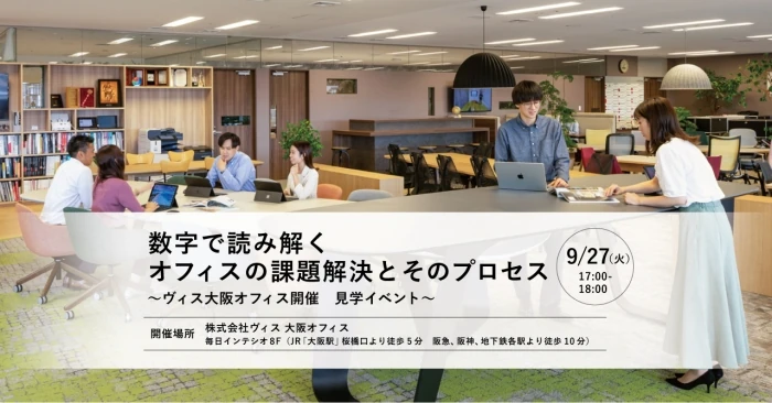 デザイナーズオフィスを手がけ、「はたらく」をデザインする株式会社ヴィス(本社:大阪市北区、代表取締役社長:金谷智浩)は、2022年9月27日(火)に無料セミナー「数字で読み解く オフィスの課題解決とプロセス」を、当社大阪オフィス(大阪市)にて開催することをお知らせします。