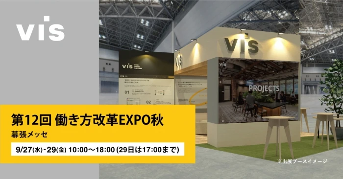 ワークデザインを手がける株式会社ヴィス(本社:大阪市北区、代表取締役社長:金谷智浩)は、2023年9月27日-29日に幕張メッセ(千葉県千葉市)で開催される「【東京】総務・人事・経理 Week内 第12回働き方改革EXPO(秋)」に出展します。ワークプレイスをデータで可視化するDXツール「WORK DESIGN PLATFORM」やワークデザインに関するサービスを紹介します。