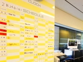 そしてこのシマシマ、ただのシマシマではありません。なんと、ホワイトボード仕様で、メンバーの行動予定表になっています。可愛い上に機能的!
