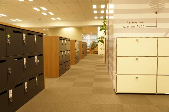 出社時に荷物を取り出し、帰宅時には全ての荷物をロッカーに収納し、デスク上は何も置かれないフラットな状態にして帰る。
