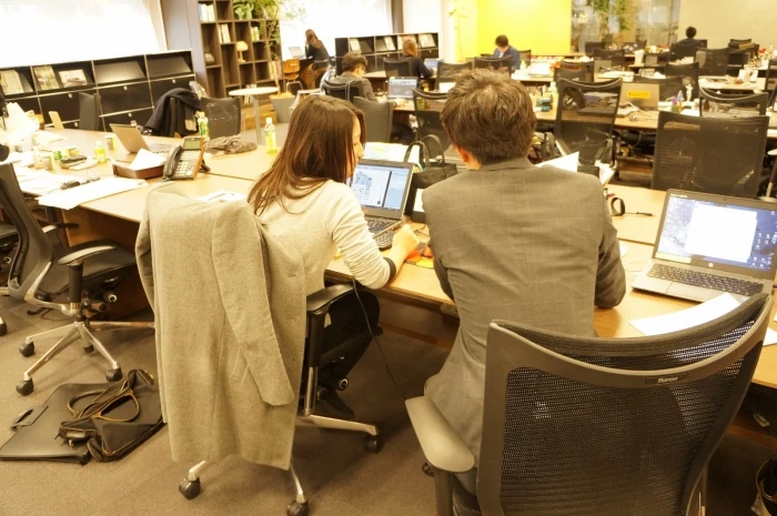 例えば、担当しているプロジェクトによってペアを組んでいるメンバーが違いますので、あるプロジェクトが大詰めになっているときはそのプロジェクトのメンバー同士が横に座りますが、また次の日は別の案件の提案を控えているので、別のメンバー同士が横に座り一緒に提案書を作成することができます。