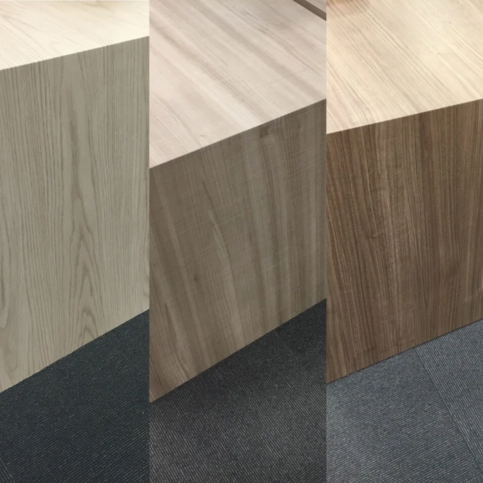 これまでは、ナチュラルな薄い木目の化粧板で仕上がっていましたが、そこに新しくシートを施し、木目の色が濃くなりました。
