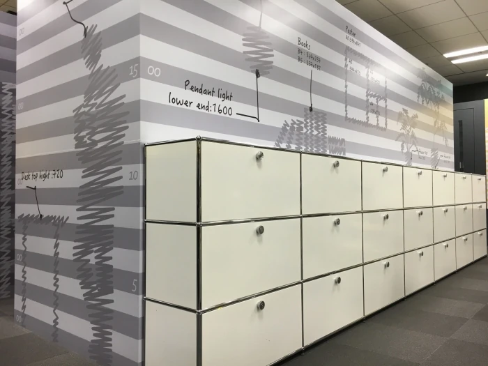 ちなみに、ヴィスではUSMのハラーシステムを利用しています。USMはアメリカのオフィス家具ブランドひとつで、”モジュール”といってある一定の規格を元にしたビルディングシステムを基礎に開発されており、優れた機能性とデザイン性を兼ね備えています。