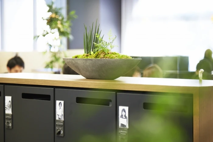 モバイルロッカーも、フリーアドレスの発展に伴い常に進化をしています。例えば郵便物を配布できるようにメール投入口がついていたり、鍵が不要のダイヤル錠になっていたり、さらにはロッカー内はPCやスマホの充電ができるようなコンセントが完備されていたりします。フリーアドレスとモバイルロッカーの導入によって、在席率に応じた効率の良いワークスペースの実現と、ペーパーレスオフィスの実現が可能になります。