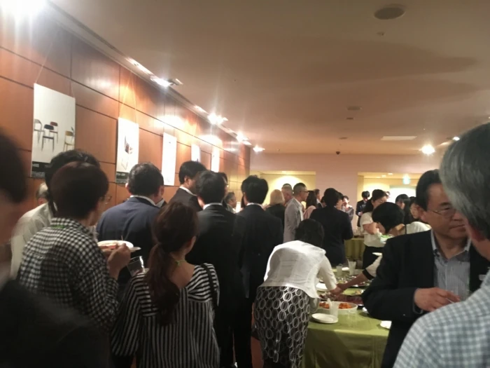 展示会は2日間にわたって行われ、外部の方を講師にお呼びしてのセミナーや、立食のパーティー等も含め16時から20時まで開催されていました。私がお伺いをしたのは2日目の18時ごろ。ちょうどセミナーが終わる時間だったので、100人以上のお客様で賑わっていました。