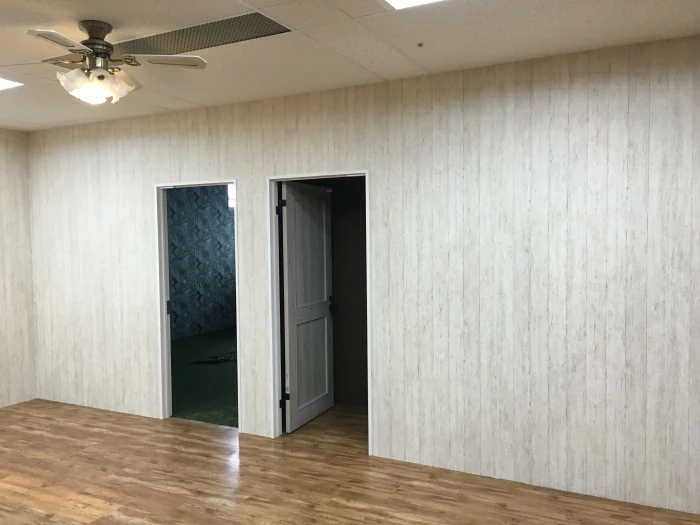 こちらの会議室でも黙々とクリエーターさんが働かれてます。お邪魔にならないように、こそっと覗き見・・・。いやはや、Baliですか?という空間。個室ごとにデザインが施されているんです。さすが。そして奥に見える壁はなんと壁紙なんです。本物の木ではないんですよ。でも本物みたいですよね。最近の壁紙は種類も増え、再現性も高くなっています。