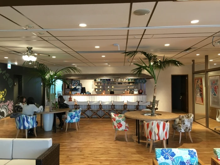 右側を覗けば、フリースペースが広がっていました。この9階フロアはクリエイターさんの為のコワーキングスペースなんだそう。スタッフのsurferさん達が過ごすこともあれば、外部のクリエーターさんたちが過ごされたりされるそう。クリエイティブ業界の方を限定としてされているそうで、自然とコラボレーションが生まれることも多いんだとか。「快適な環境に人が集まり、人が集まるところに新しいビジネスが生まれる」とよく言いますが、正にノースショア様の空間がそうでした。Hawaiiのような空間があれば、リゾート気分でオフィスに行きたくなっちゃいますよね。