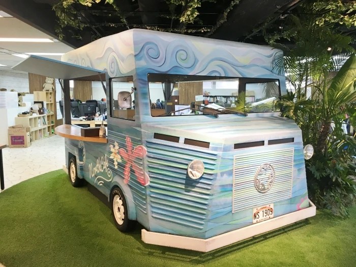 ワゴン車ー!!!!なんと、ワークスペースの中心にワゴン車がありました!