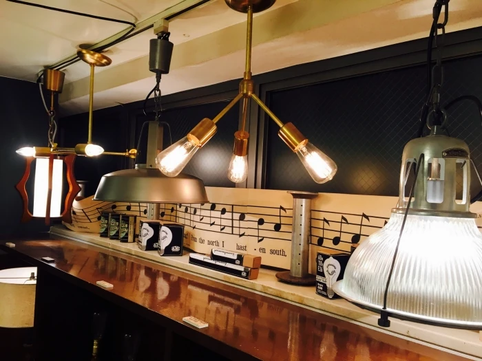 トレンドのエジソンランプを使ったものや、レトロな雰囲気をかもし出すホーローのランプシェードを使ったものなど、アメリカンヴィンテージ好きにはたまらないテイストのものが集められていました。