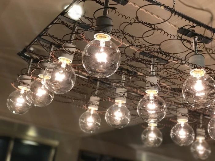 なんと、ベッドのマットレスの中に入っているスプリングス(ばね)をつかった、ヴィンテージの照明です。
